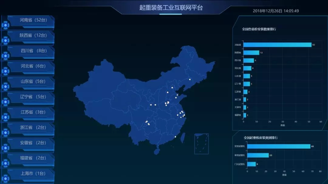 平台面向起重装备制造业数字化、网络化、智能化需求,运用大数据、物联网、云计算等信息技术,构建基于海量数据采集、汇聚、分析的服务体系,实现起重设备远程监控、故障诊断、预测性维护等远程运维服务应用,实时追踪并优化产品运行状态,彻底改变起重设备运维服务模式,全面降低起重机重大安全事故,提升设备运维效率和产品服务价值,形成多方参与、合作共赢、协同演进的起重装备制造业新生态。