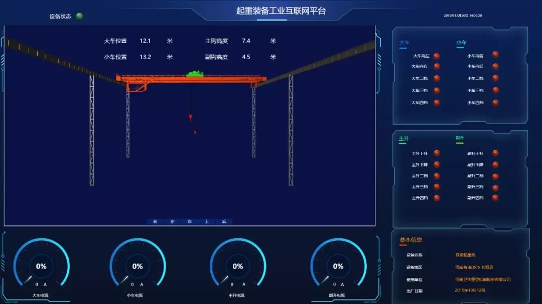 卫华集团起重装备行业工业互联网平台包括10大功能,主要实现设备运行状态的实时监测,并通过3D 仿真的形式对设备的运行状态进行直观分析,支持历史状态数据和视频数据的同步回放。基于设备运行、保养维修产生的海量数据,能够为产品终端用户、起重机制造厂家、配套件供应商、行业发展、政府监管提供价值服务。