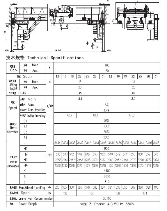 4、 大车导电可以用安全滑触线也可以用角钢,既可以在司机室对侧,也可以在司机室同侧。